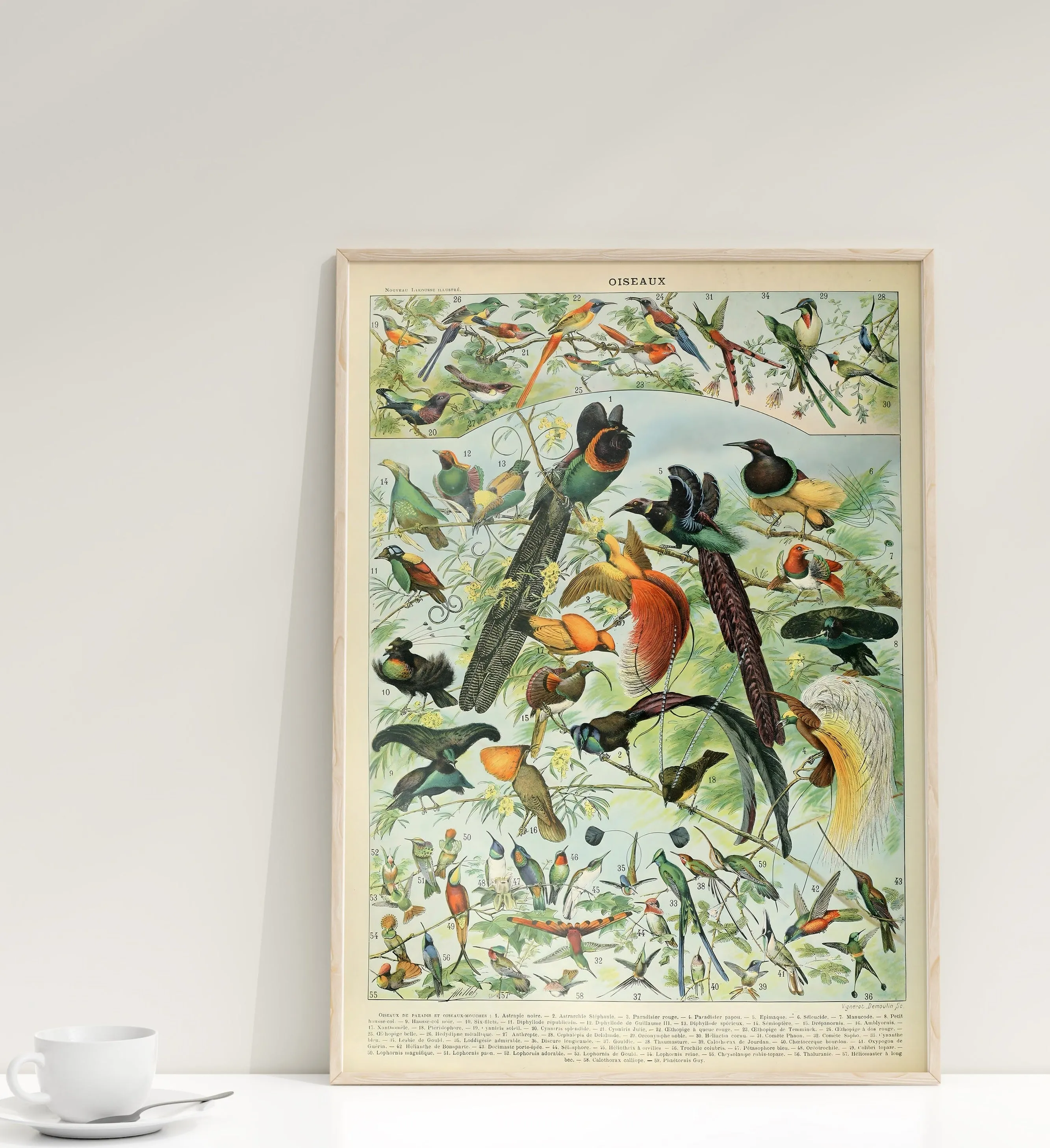 This plate showcases a new selection of birds in Millot’s classic natural history style, capturing their elegance and diversity with scientific accuracy and artistic charm.