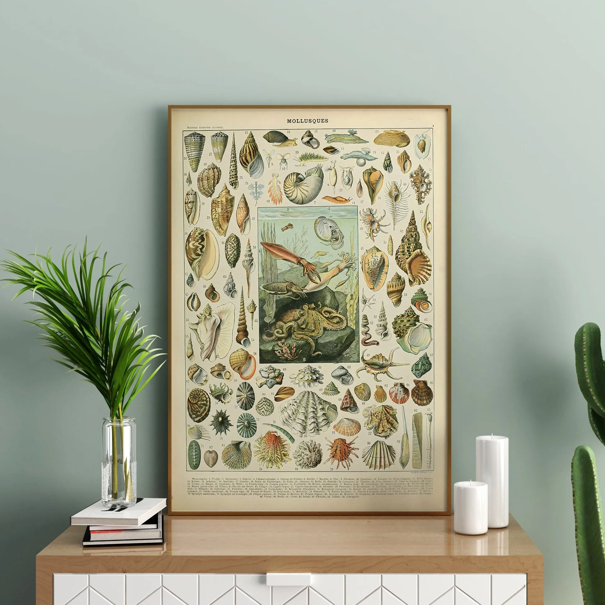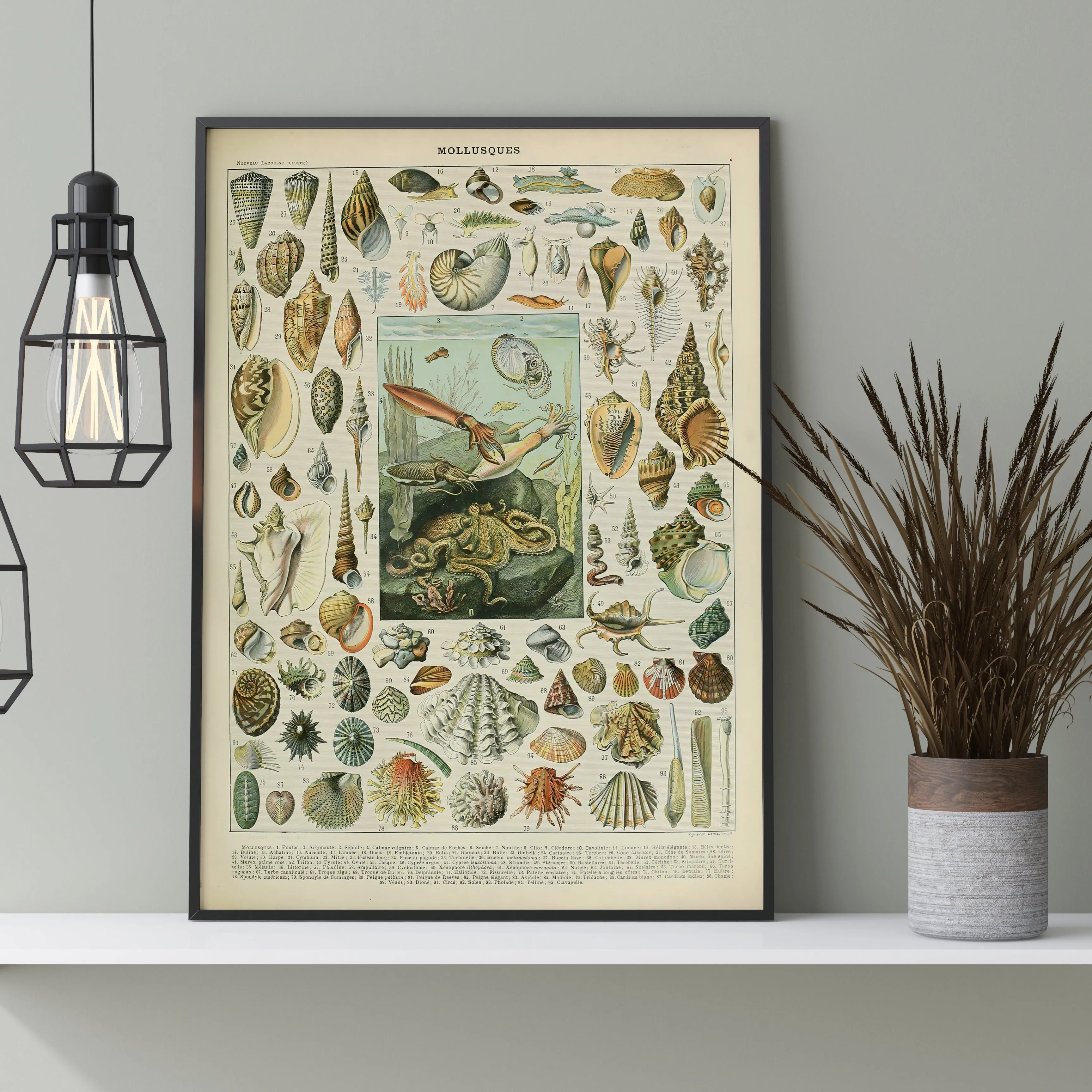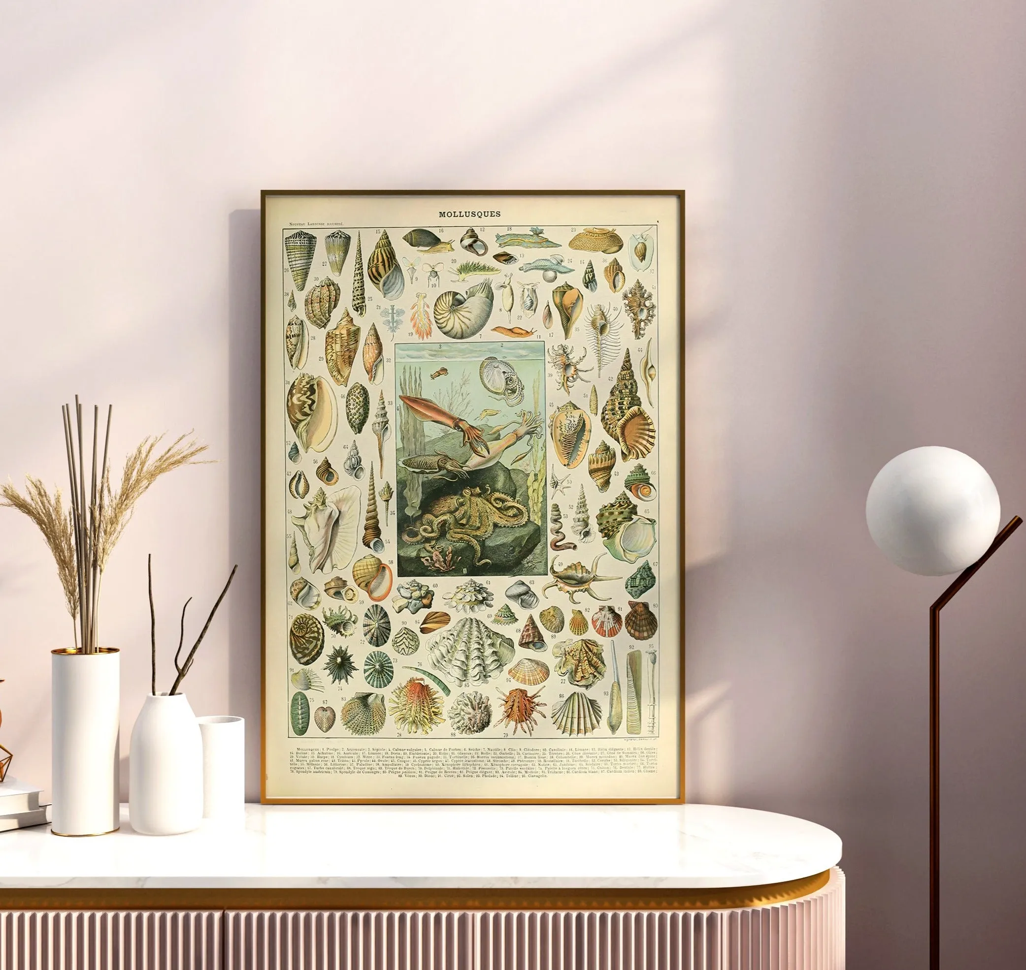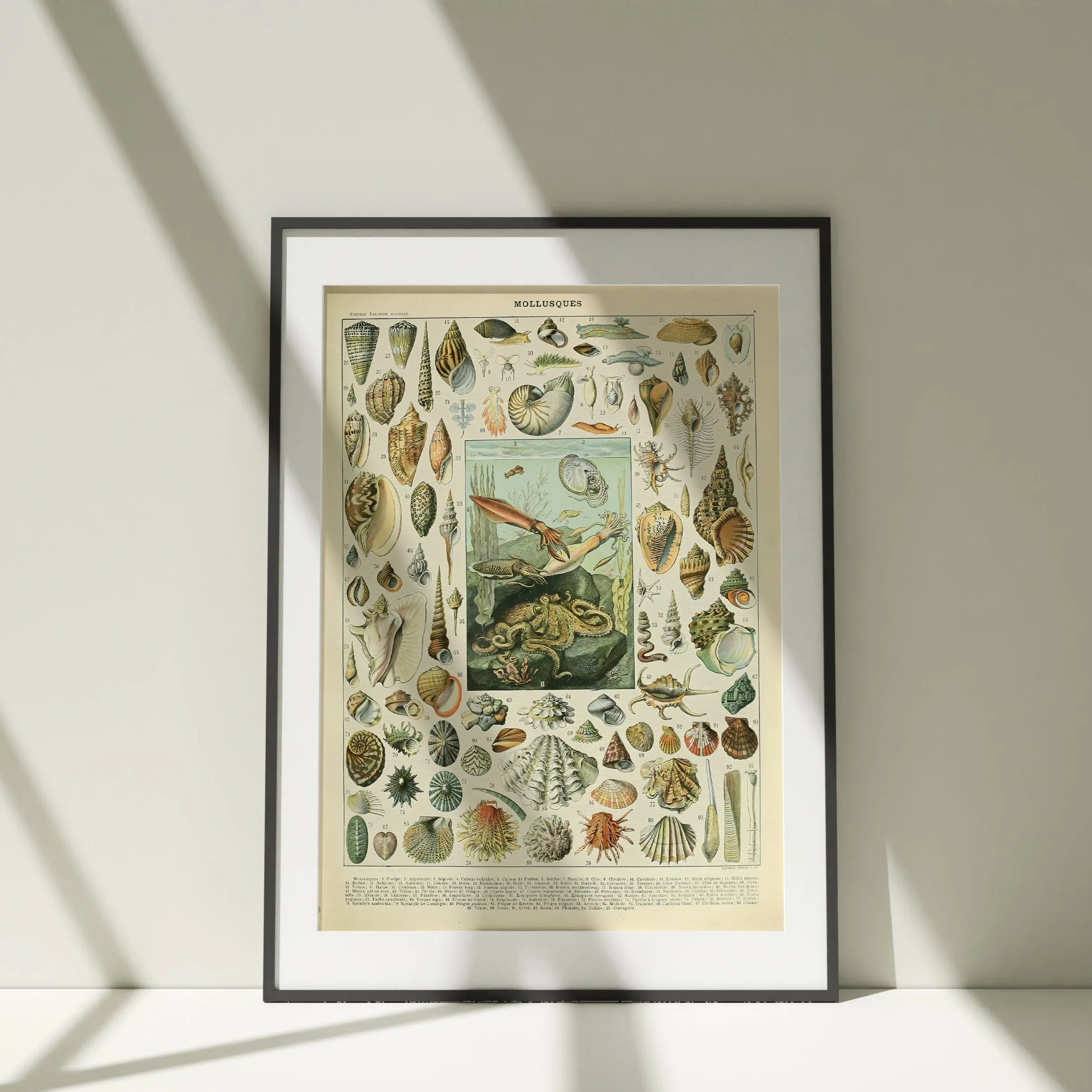 A beautifully detailed vintage illustration of mollusks, shells, cephalopods and marine invertebrates — from Millot’s classic “Mollusques” series.”