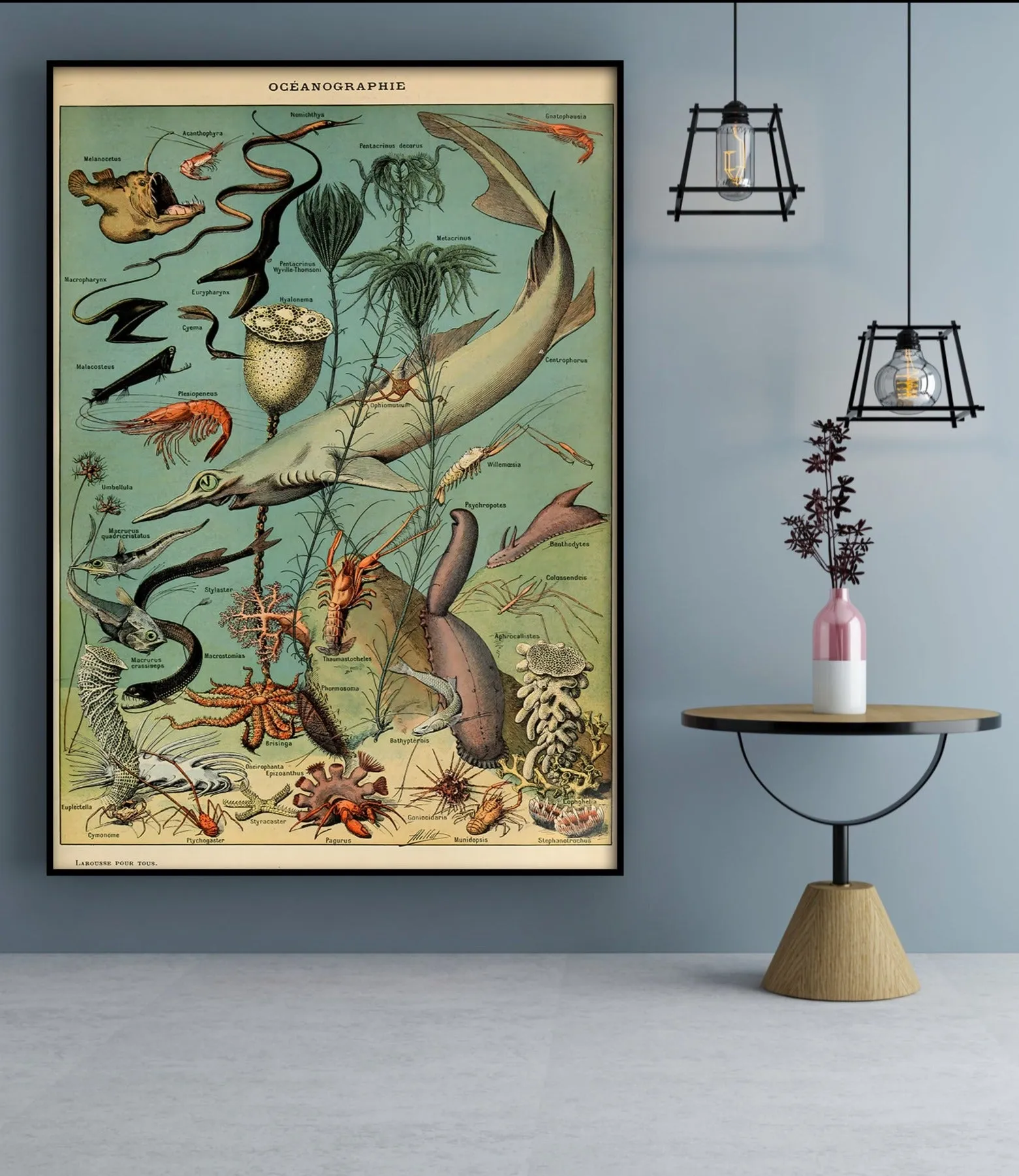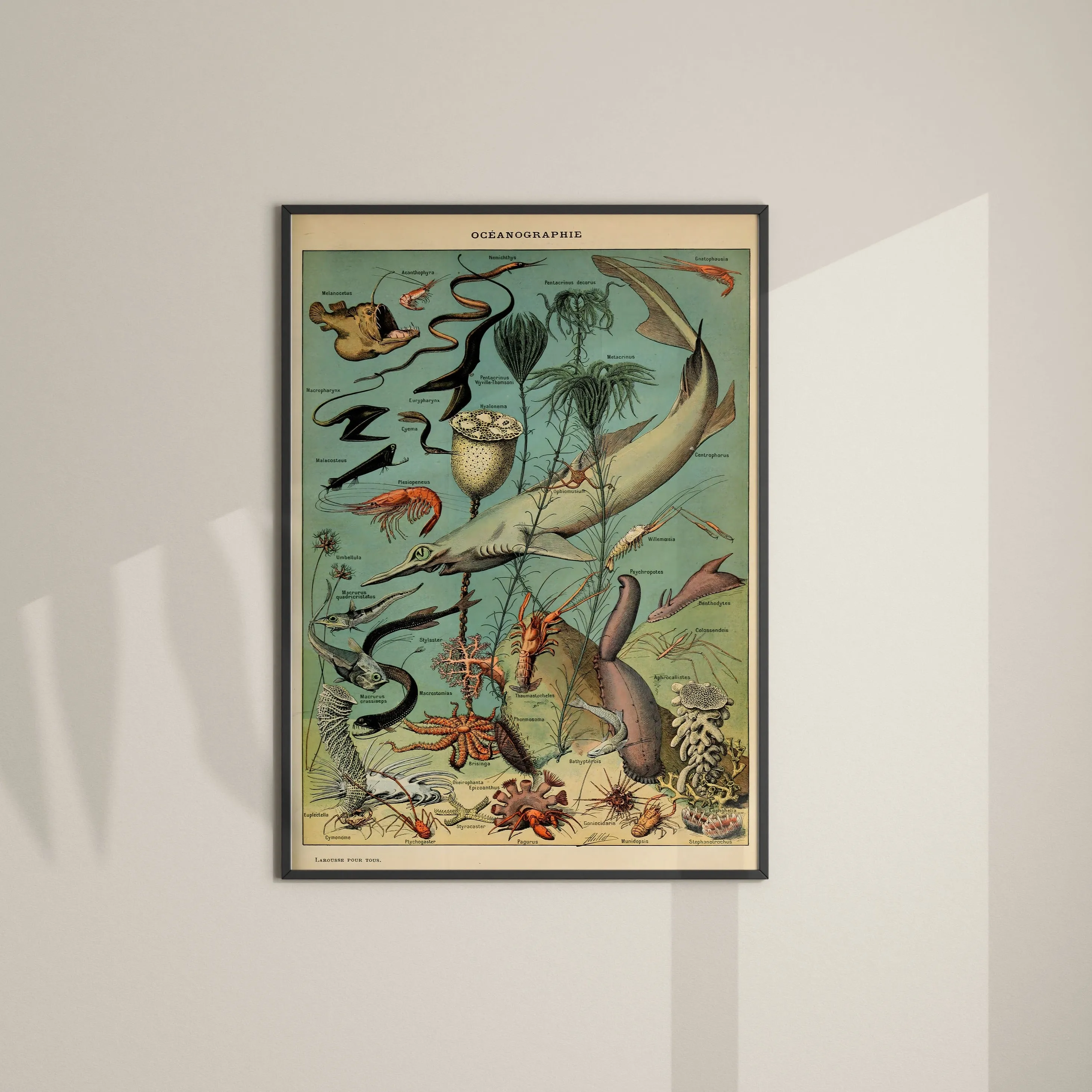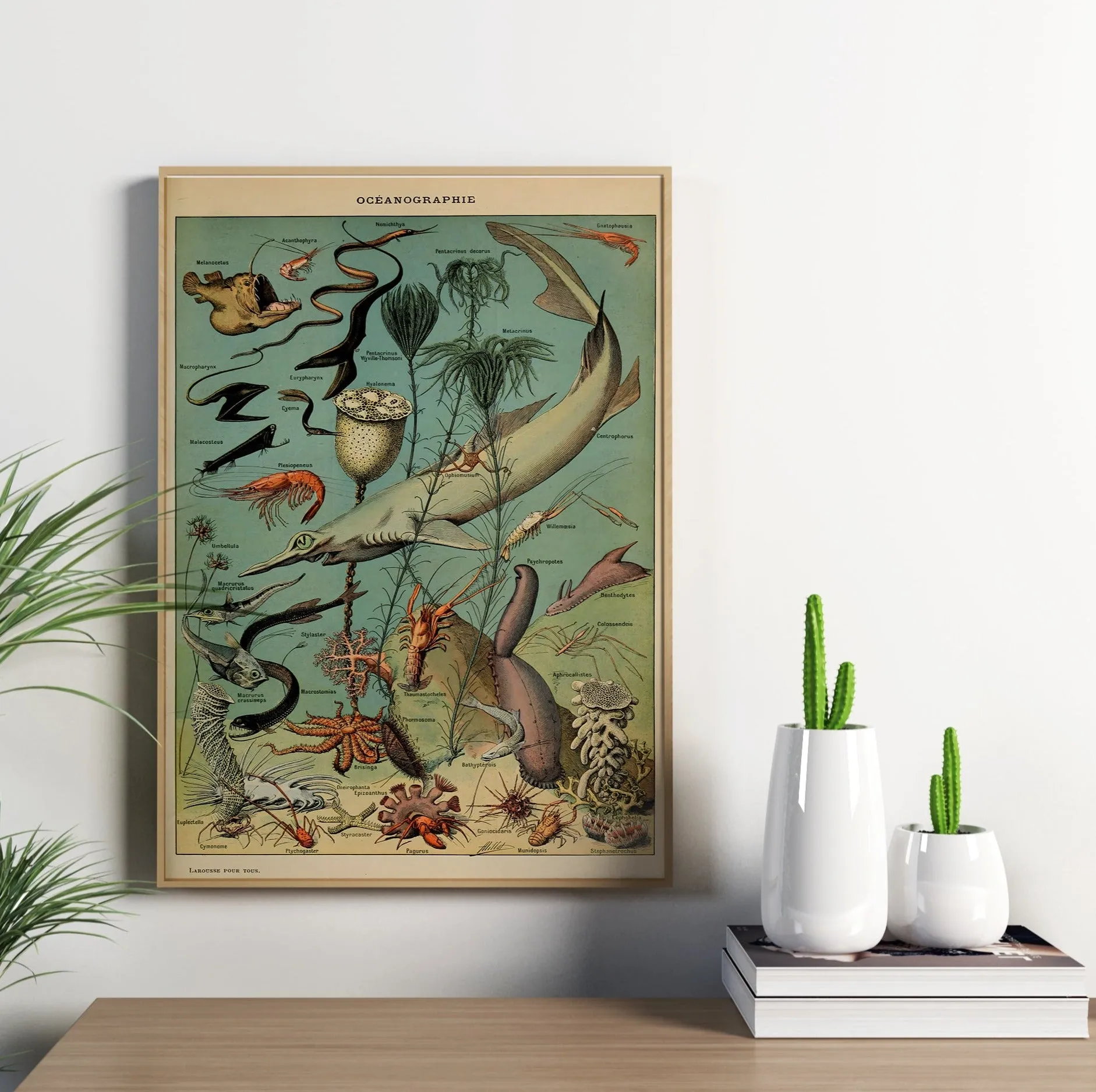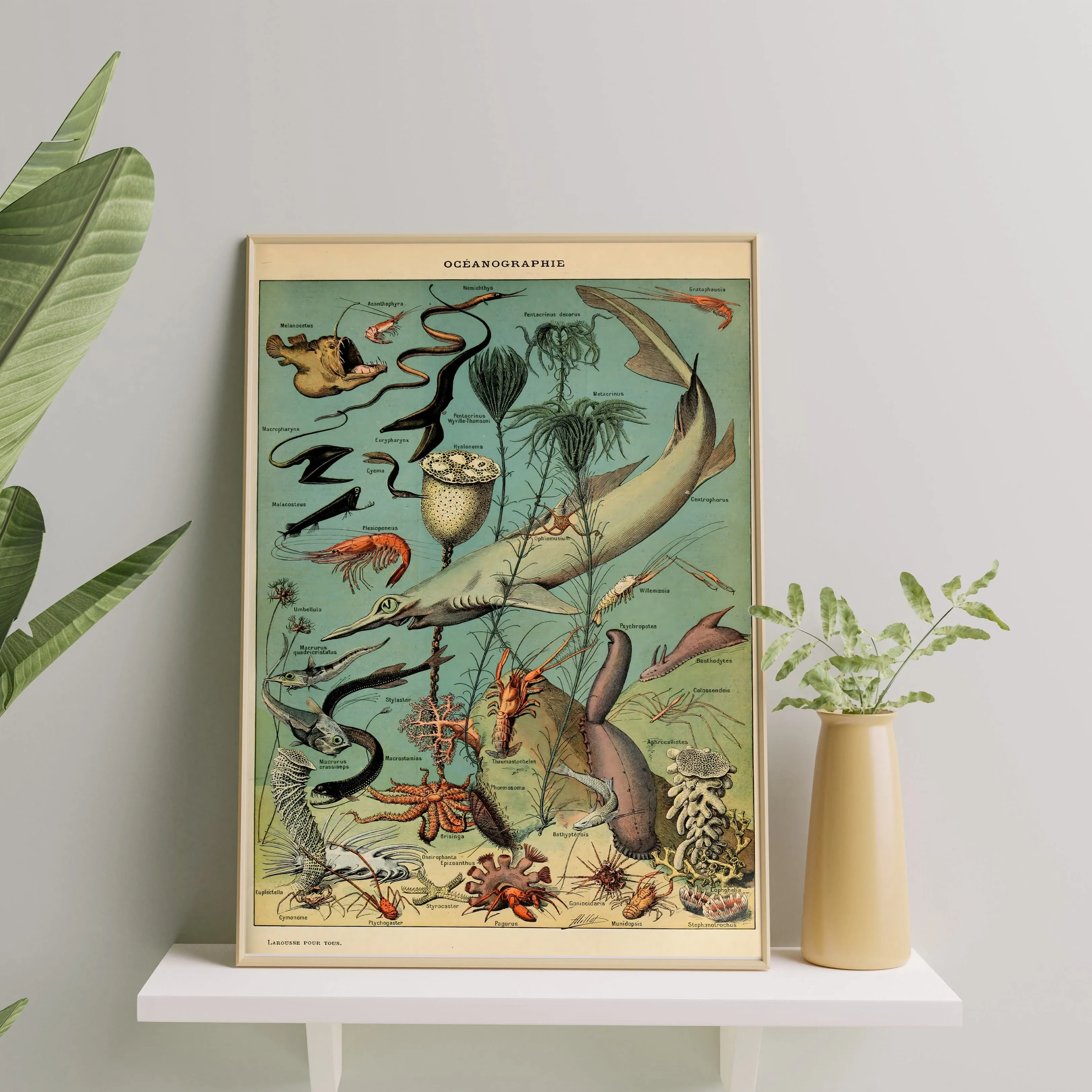 A vintage natural history illustration capturing the wonders of the ocean, from marine life to underwater landscapes. Millot’s meticulous detail and elegant style make this print both scientifically engaging and visually stunning, perfect for adding a classic, educational touch to any space.