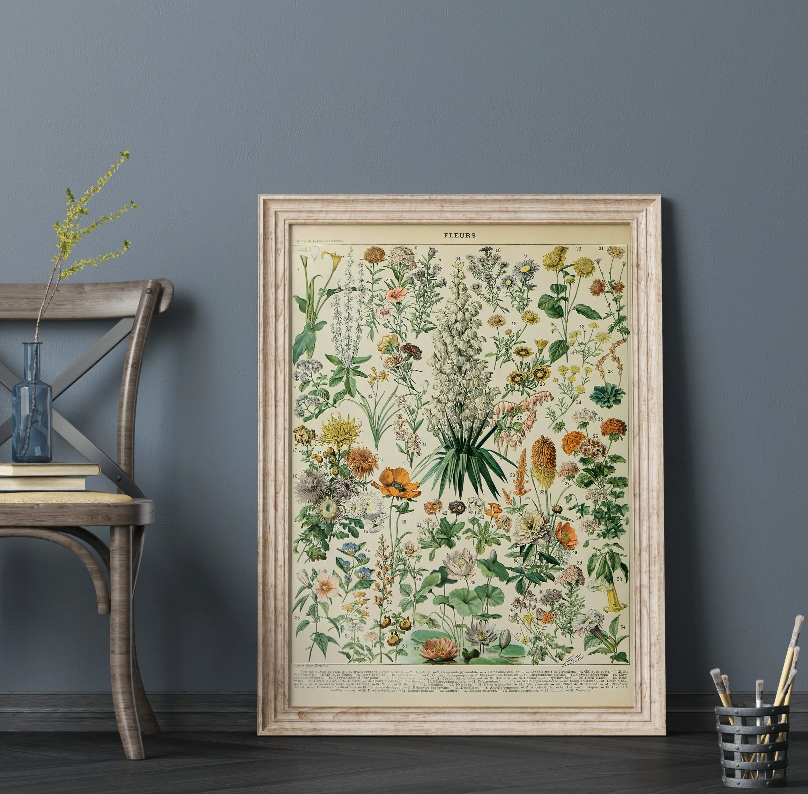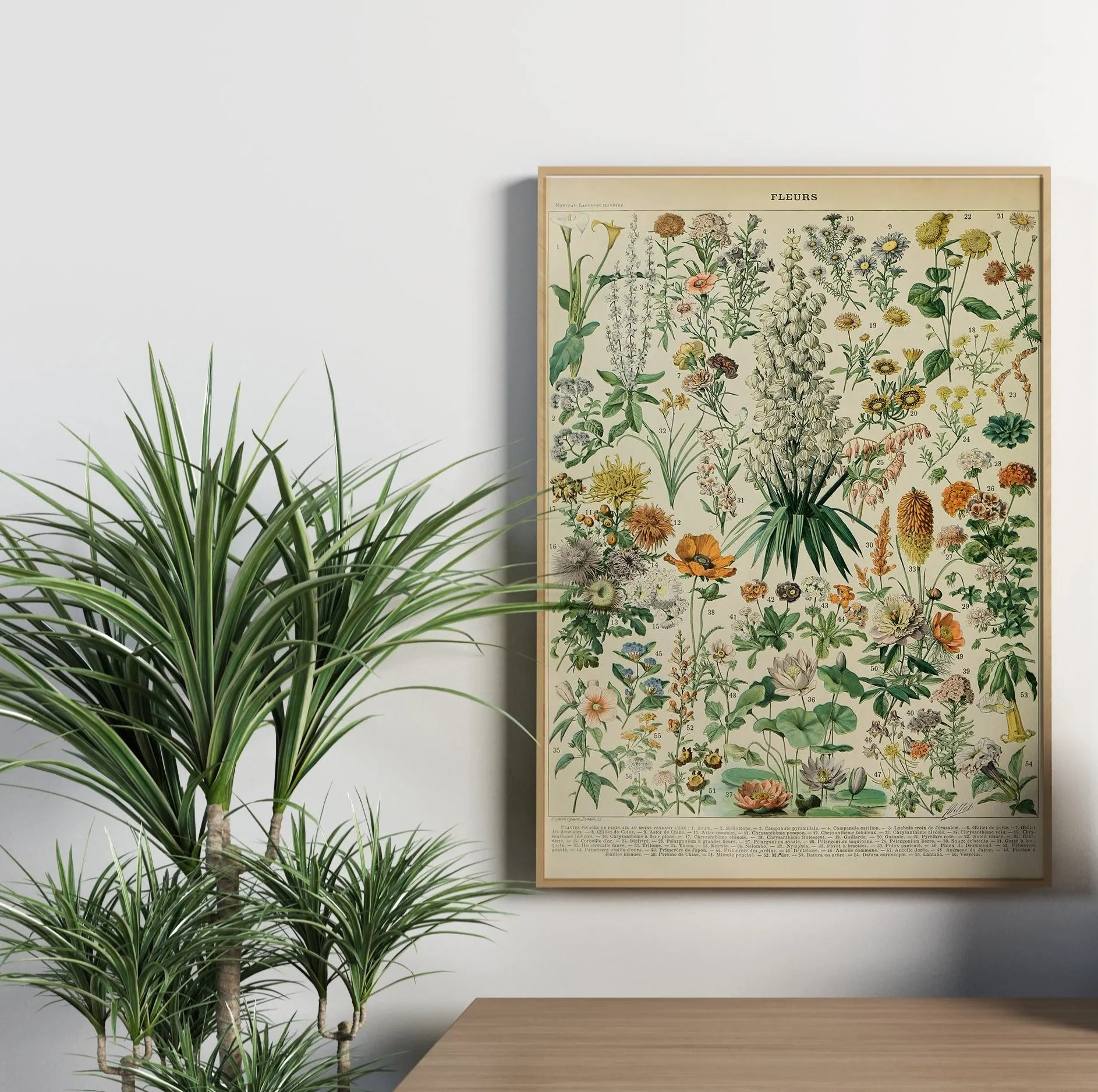 A beautifully detailed vintage illustration of flowers, capturing the shapes, colors, and textures of a variety of species. Millot’s delicate watercolor style and precise botanical rendering make this print both educational and decorative — perfect for adding timeless natural beauty to any space.
