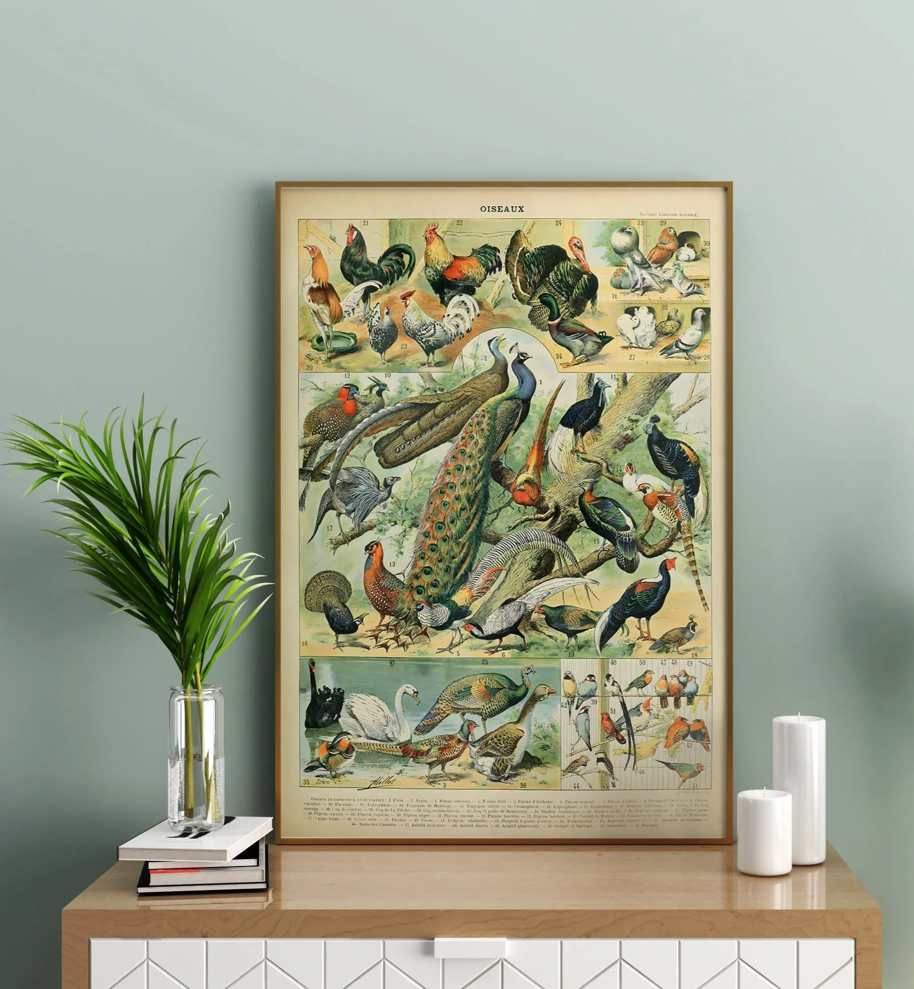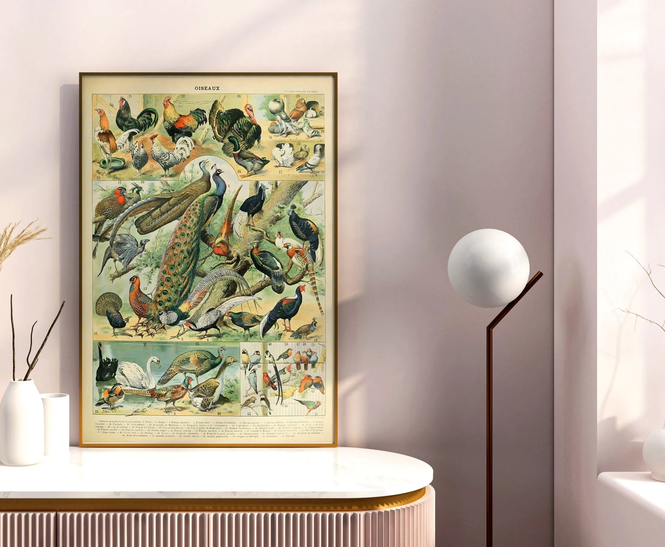 Millot’s detailed illustration of birds, capturing both scientific accuracy and decorative charm — a timeless addition to natural history art.