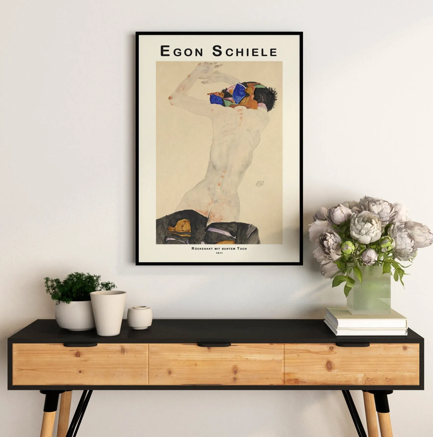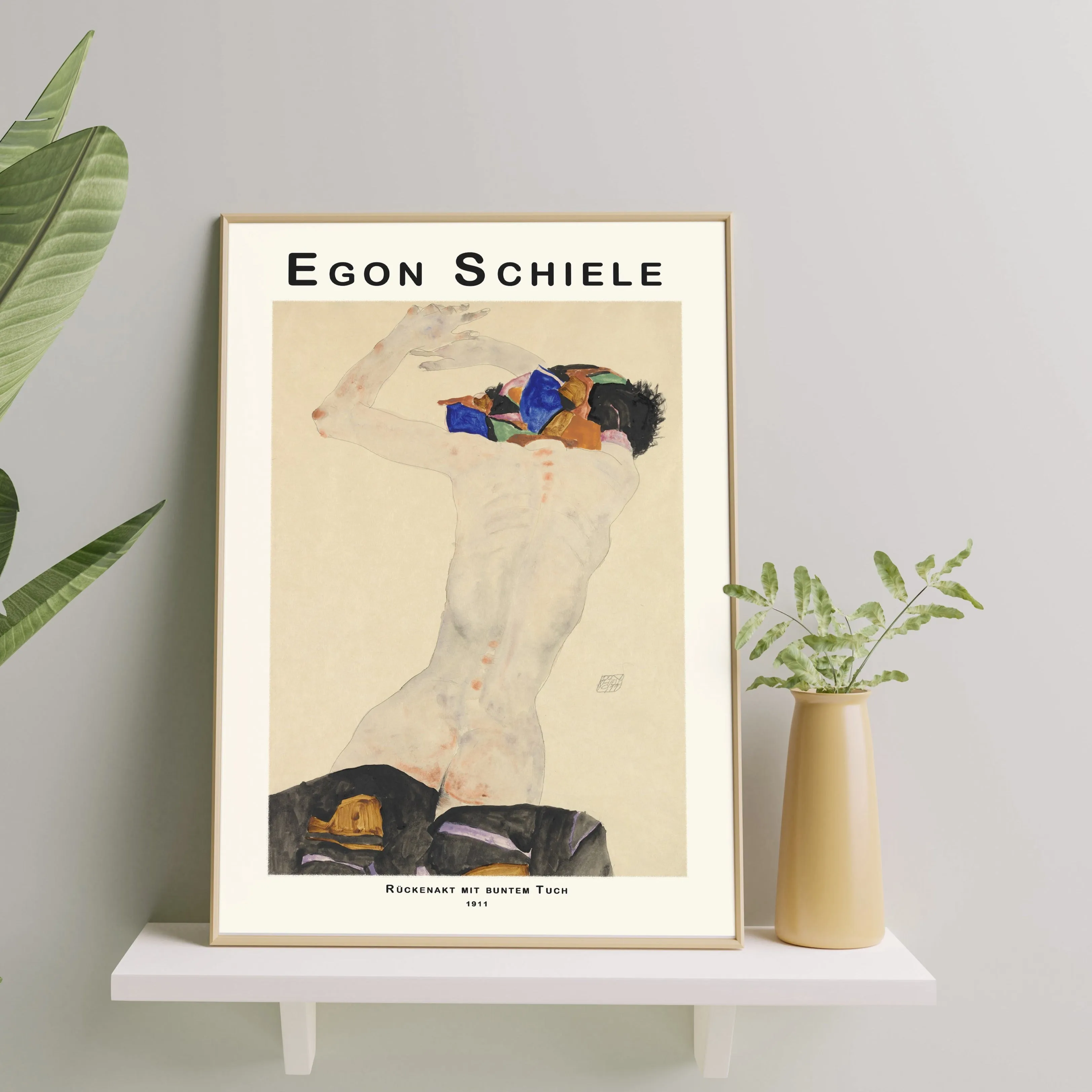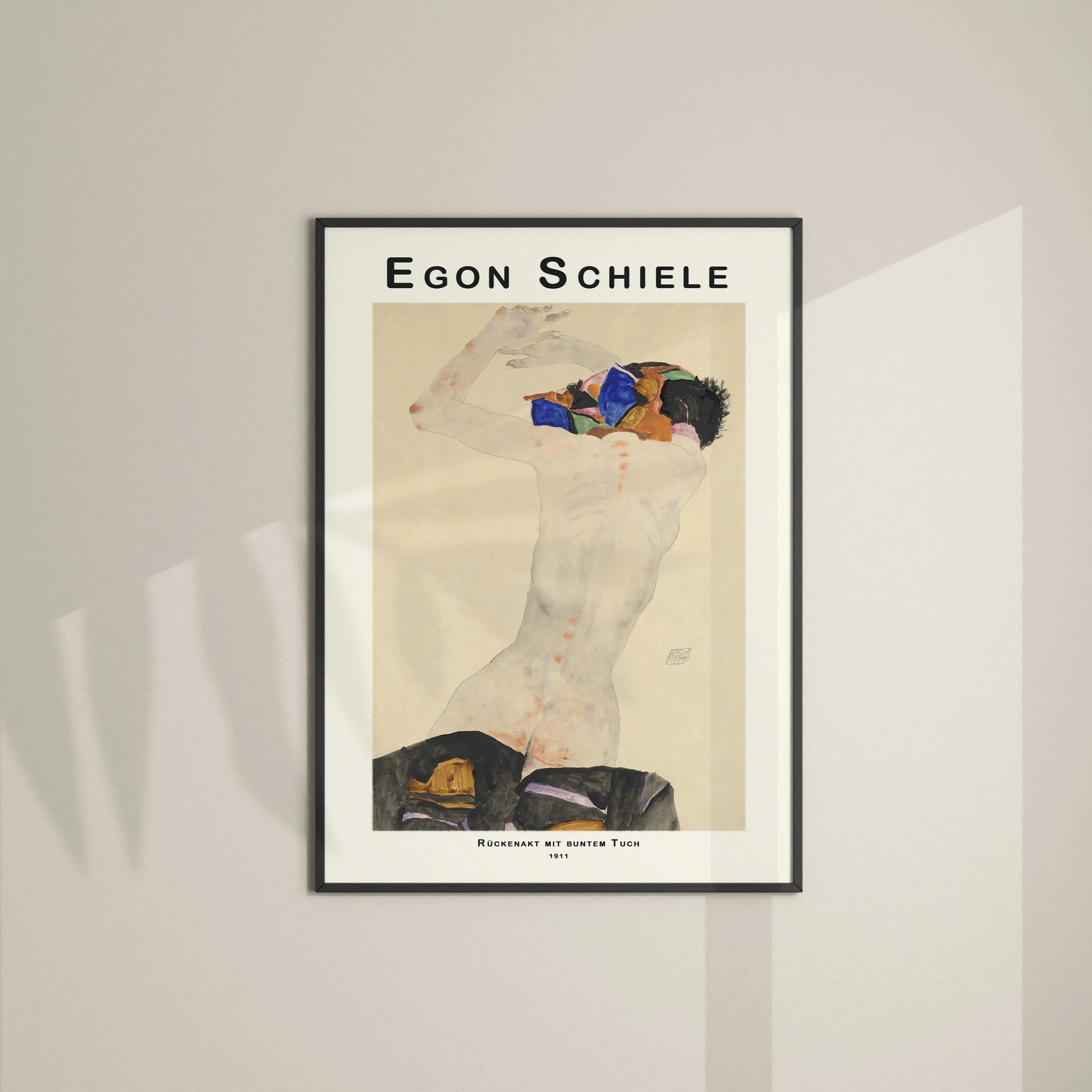 Egon Schie Rückenakt mit buntem Tuch (1911)