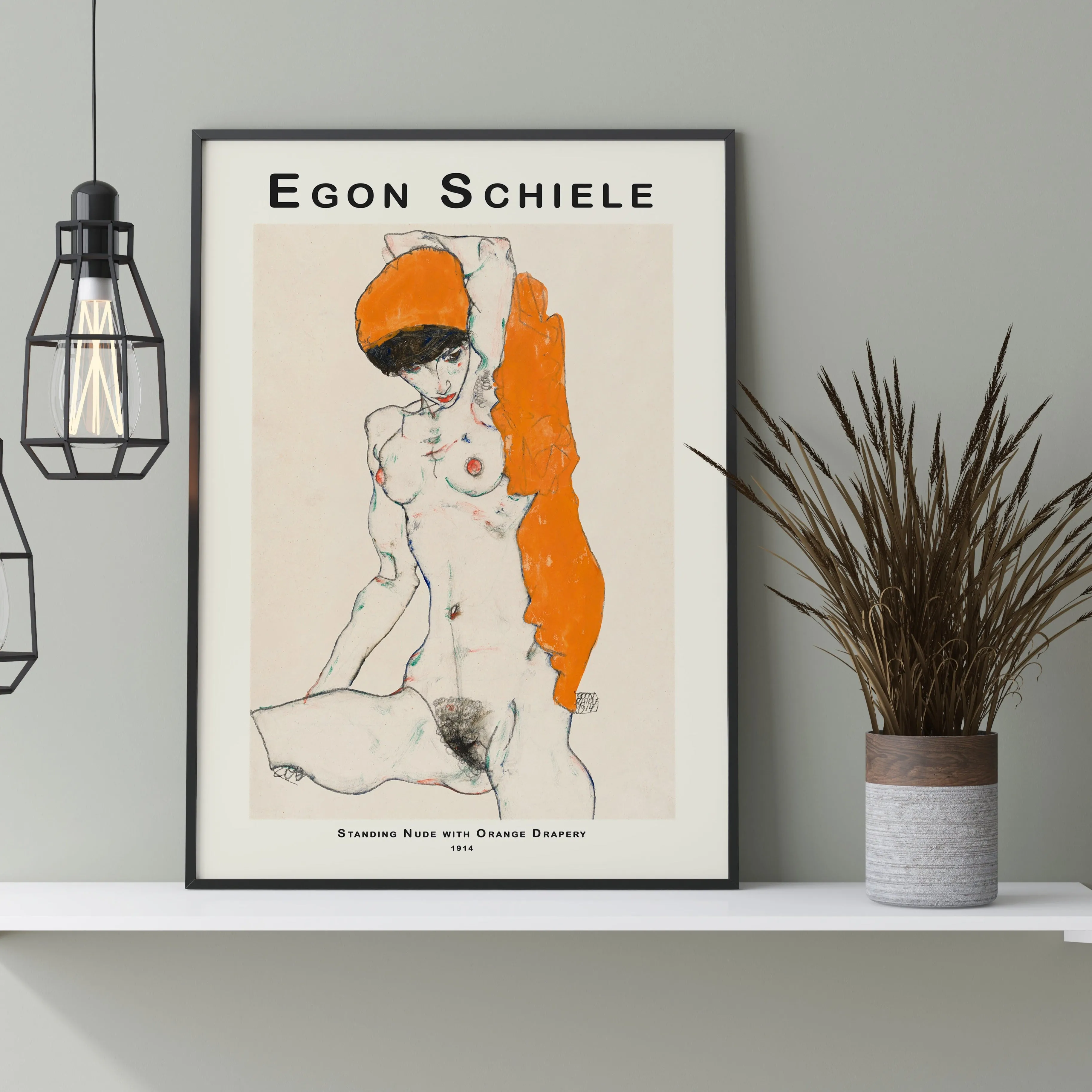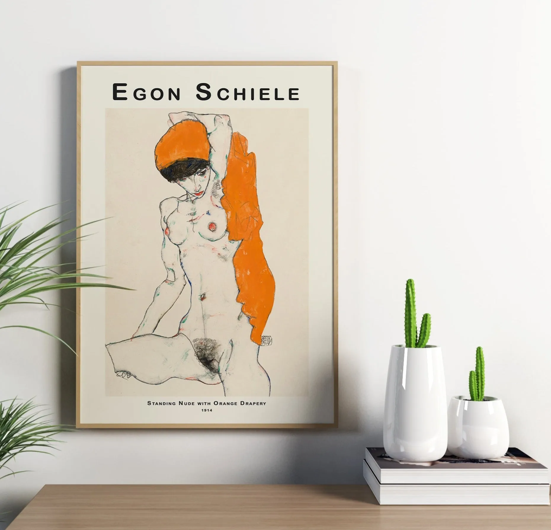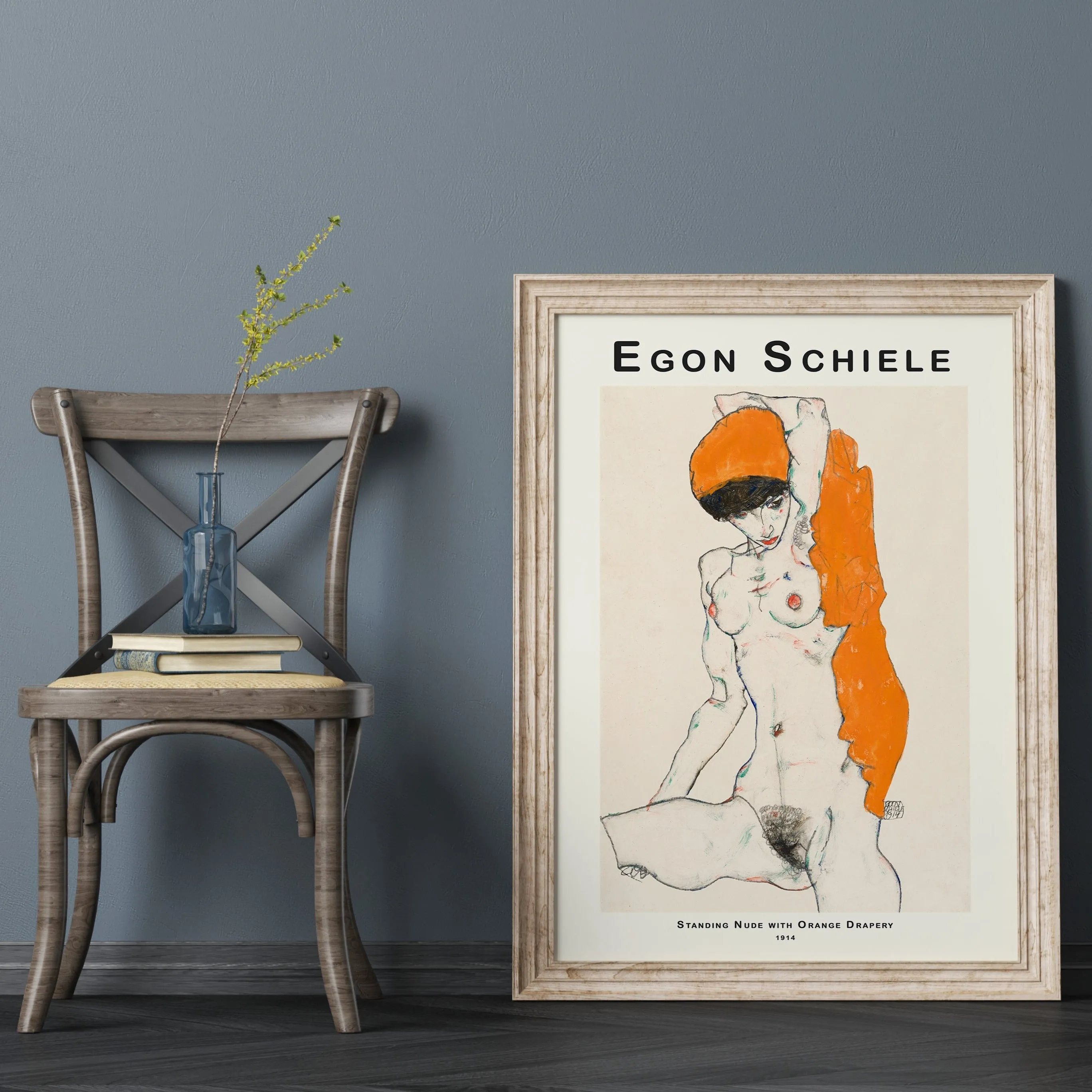 Egon Schie Rückenakt mit buntem Tuch (1911)