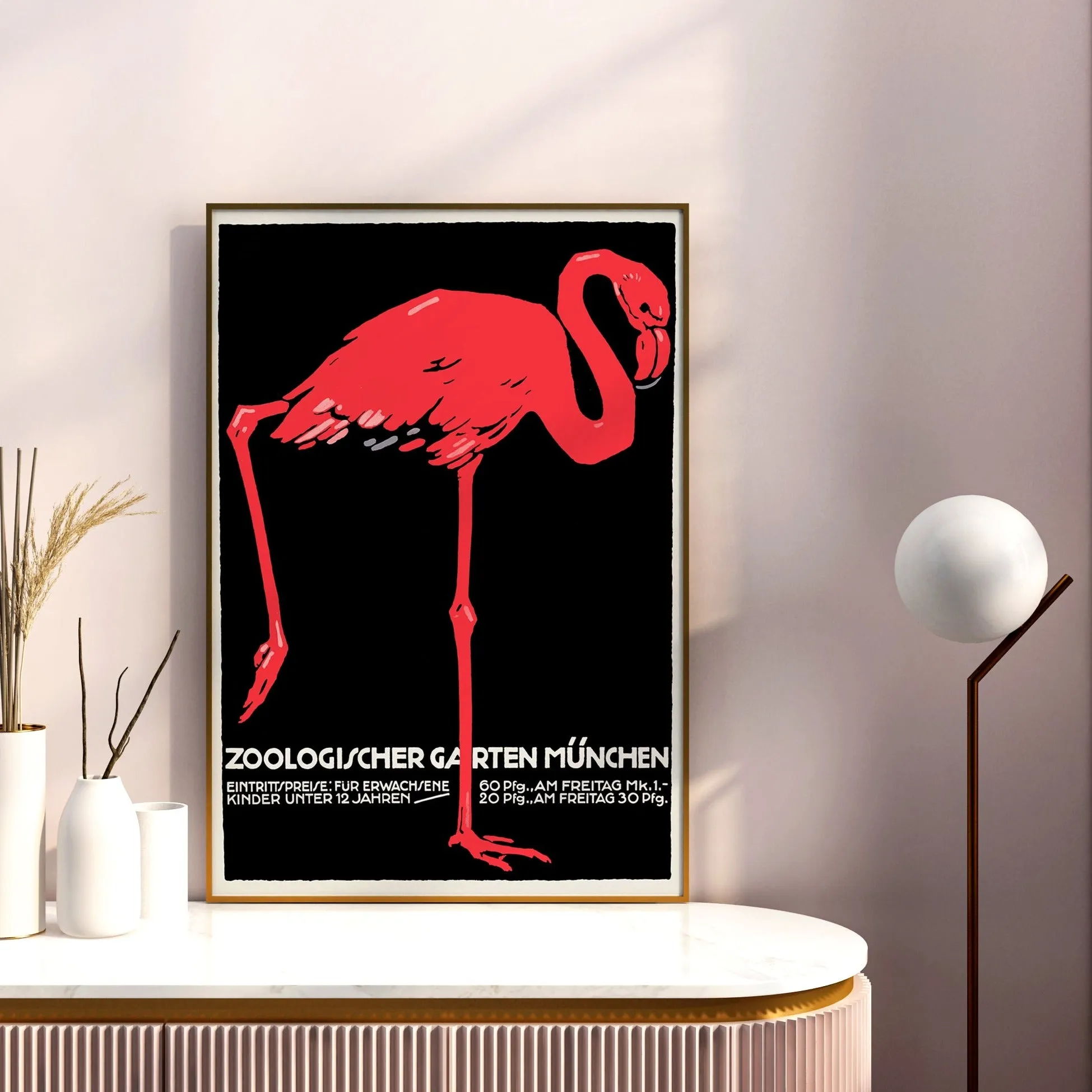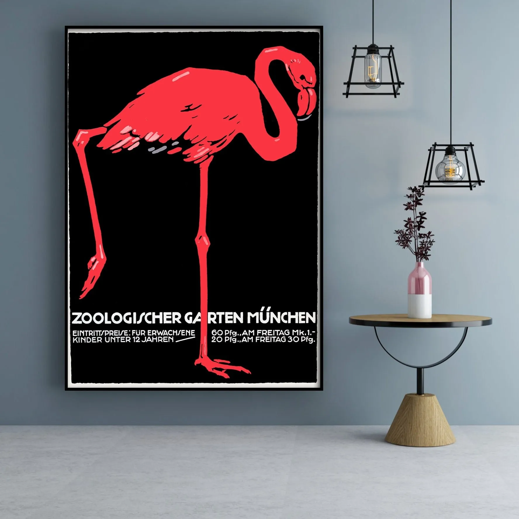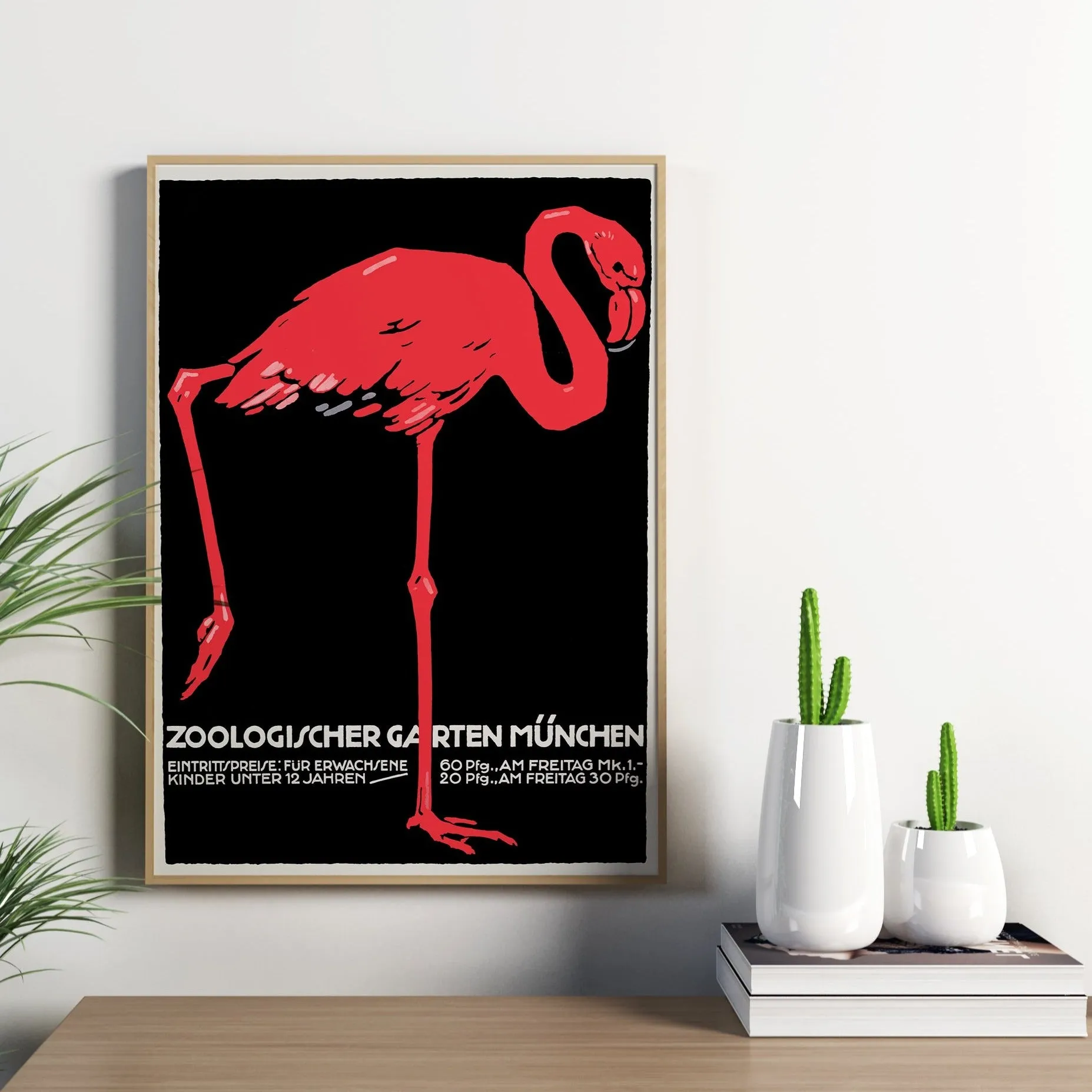 Zoologischer Garten Munchen Germany Munich Zoo Flamingo Vintage Travel Poster