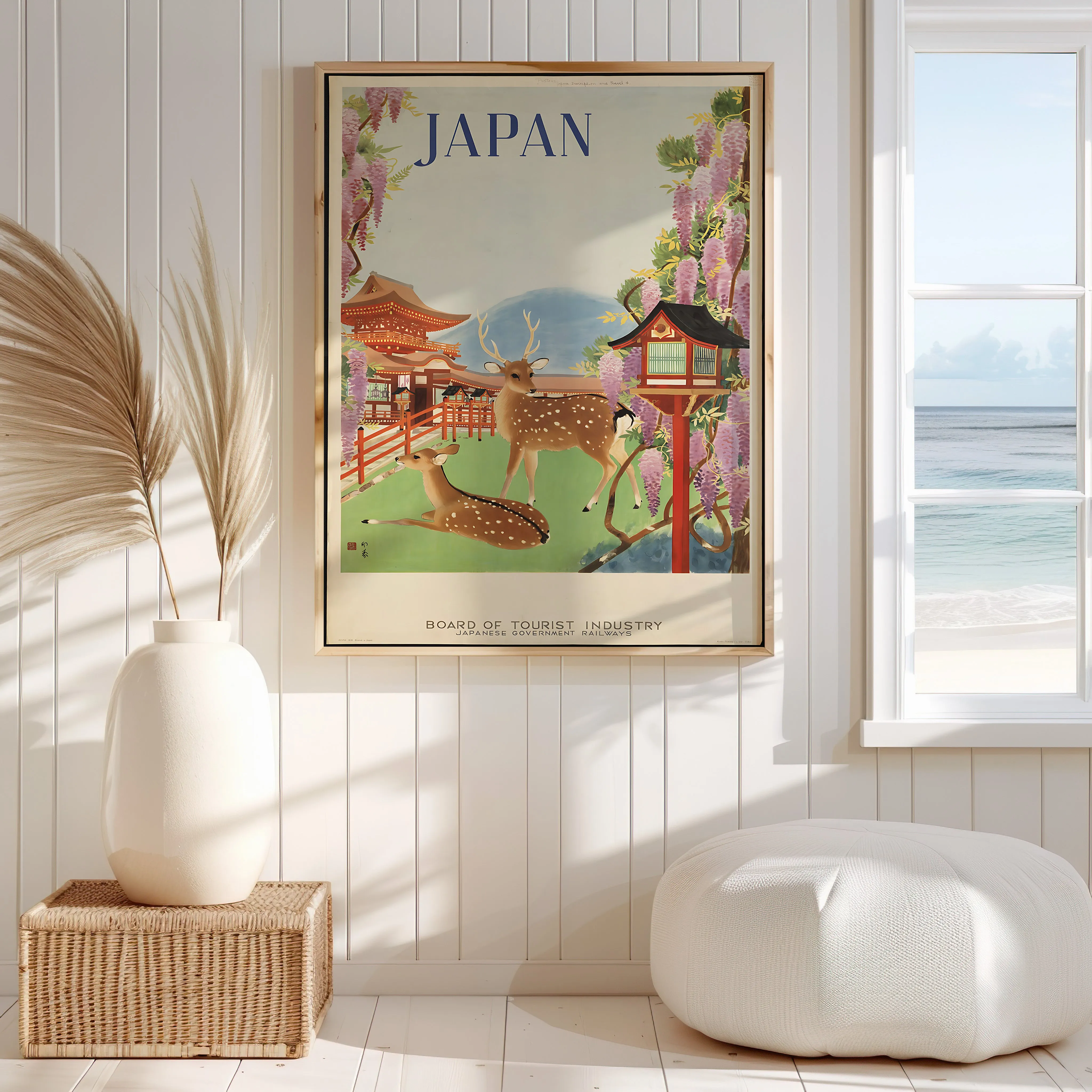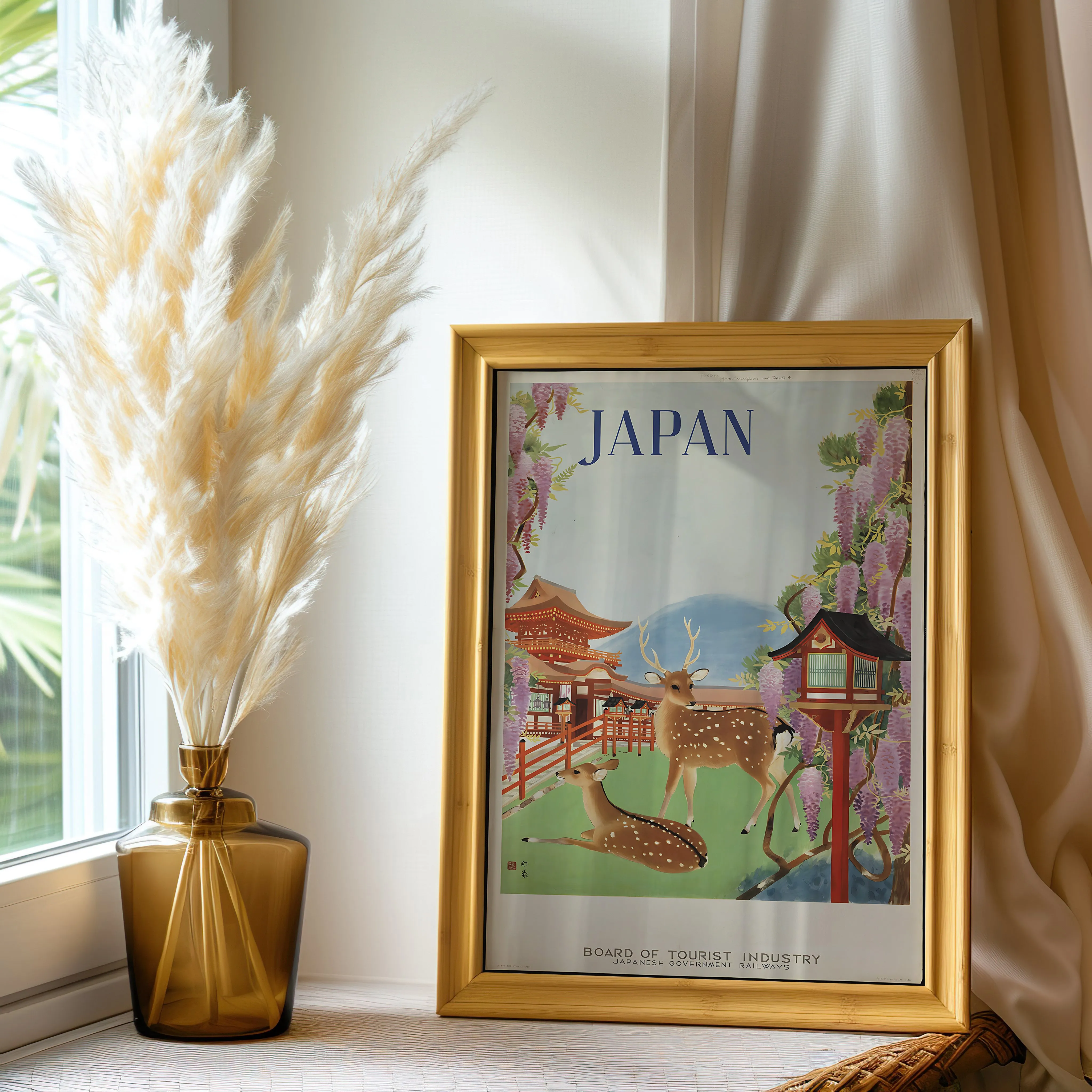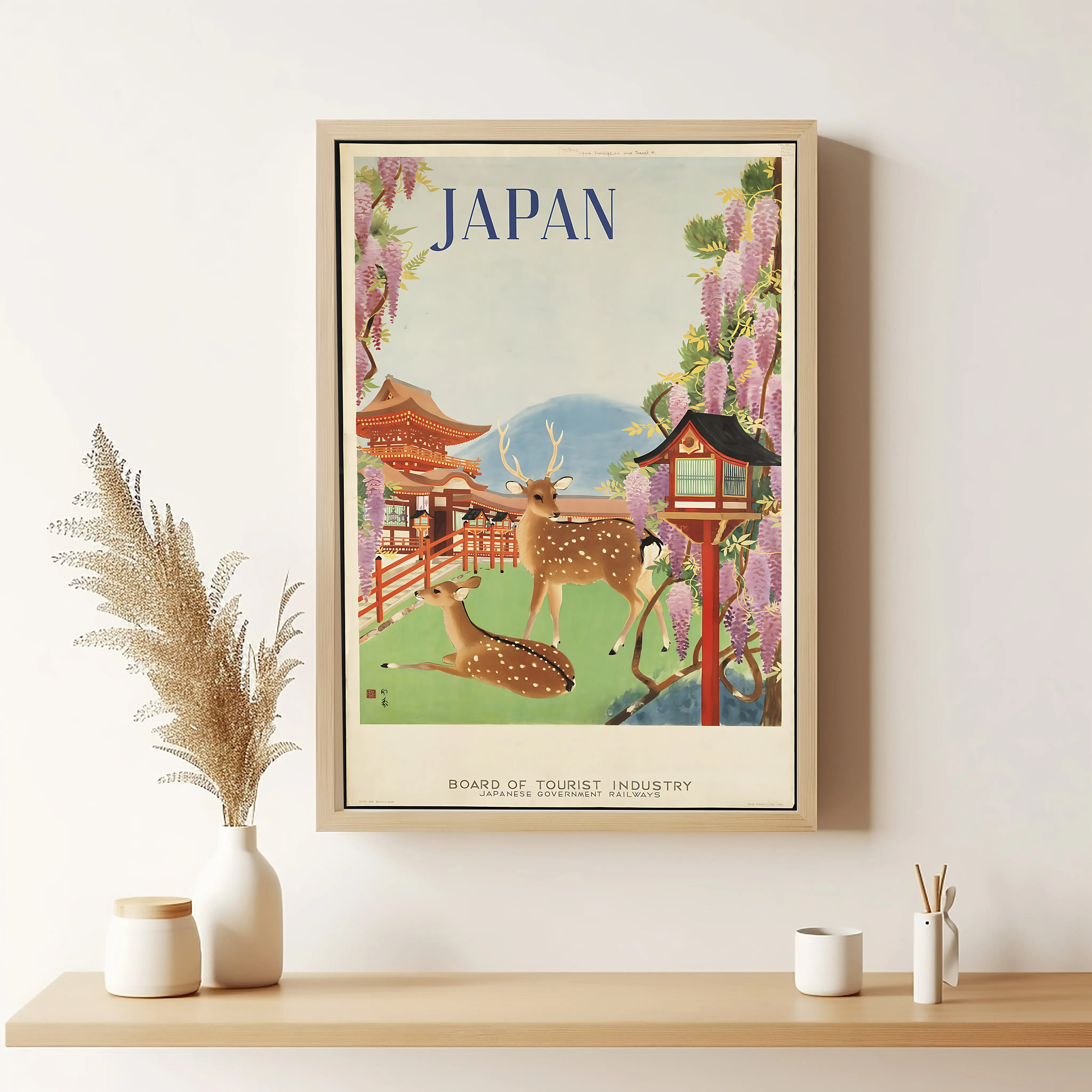 Japan Travel Poster with Deer and Wisteria
